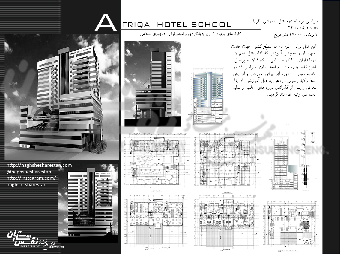 Phase two of the Africa Educational Hotel project located in Tehran, corner of Maryam with 27,000 square meters of infrastructure was on the agenda of this consultant.
