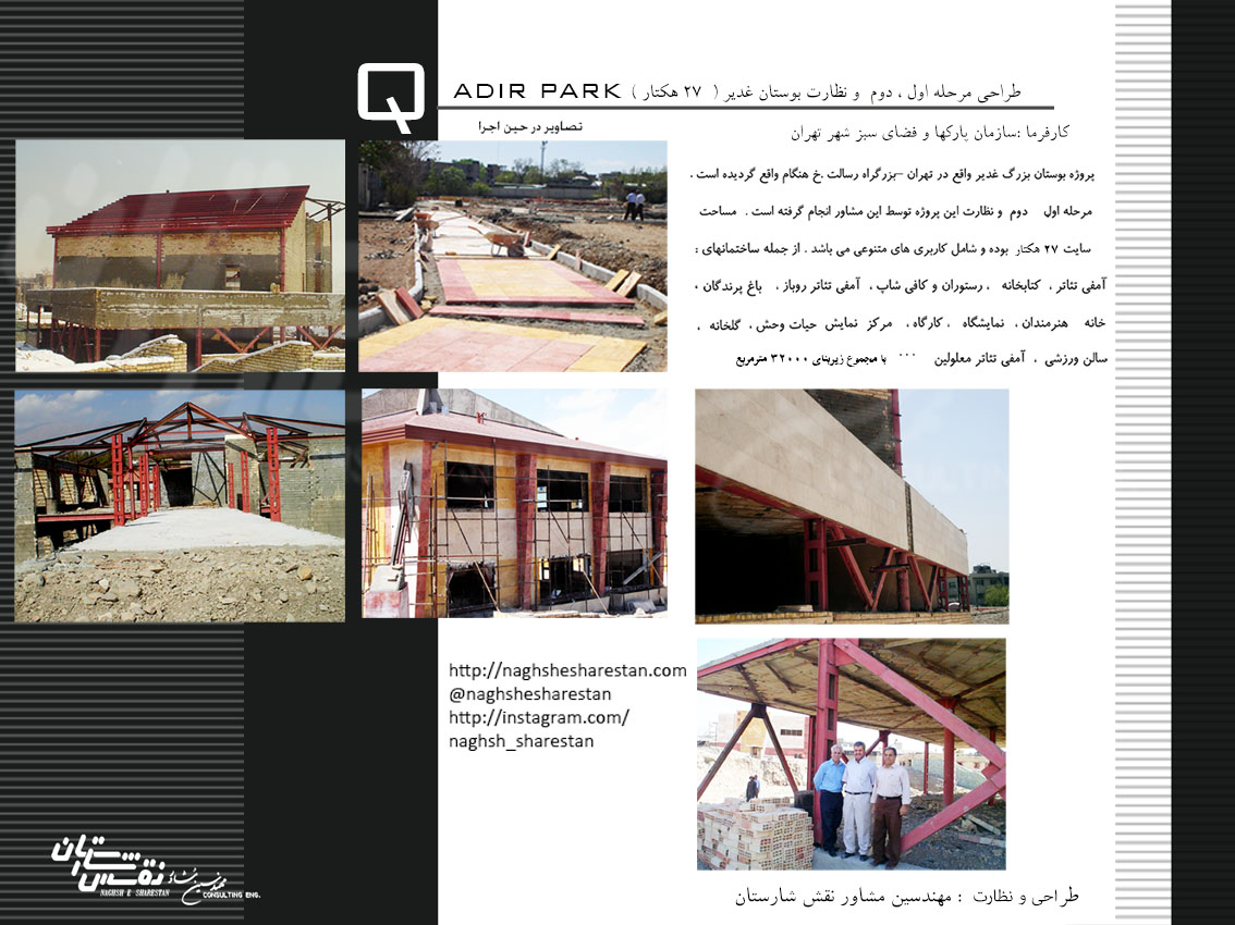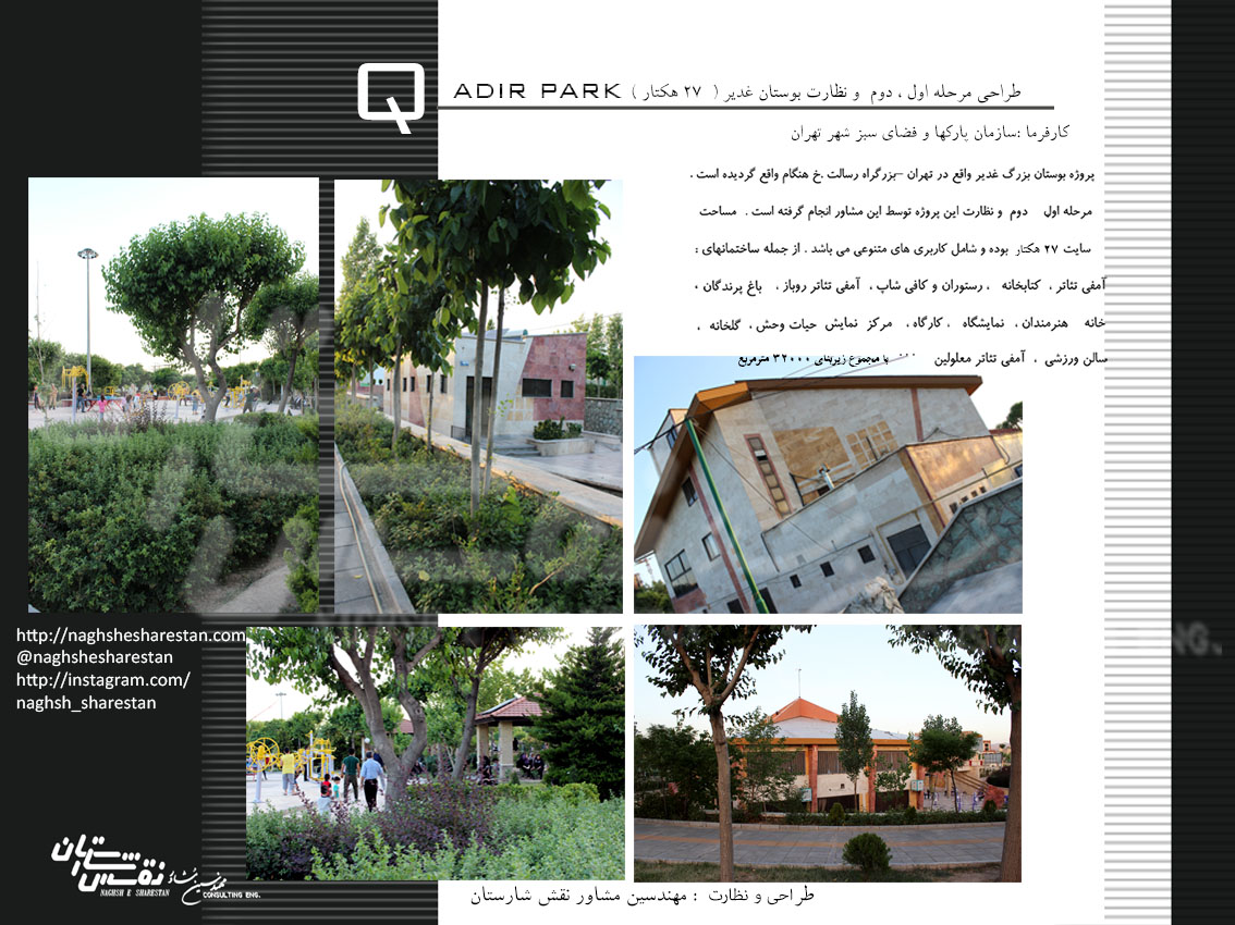 سازمان بوستانها و فضای سبز شهر تهران طراحی بوستان 27هکتاری غدیر را در محدوده منطقه 4 شهرداری تهران و در محل پارکینگ شرکت واحد و همجوار میدان الغدیر رسالت تهران به مهندسین مشاور نقش شارستان واگذار شد.