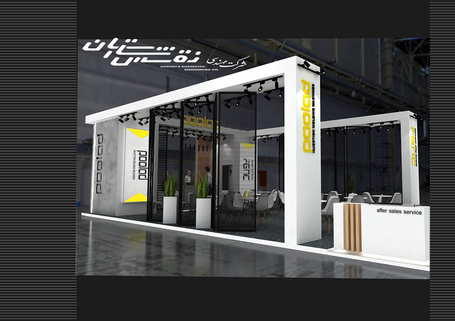 یکی از غرفه های شرکت نقش شارستان در نمایشگاه ایران پلاست سال 1402 ، متعلق به شرکت ماشین های تزریق پلاستیک پولاد به متراژ 200 متر مربع، بوده است.